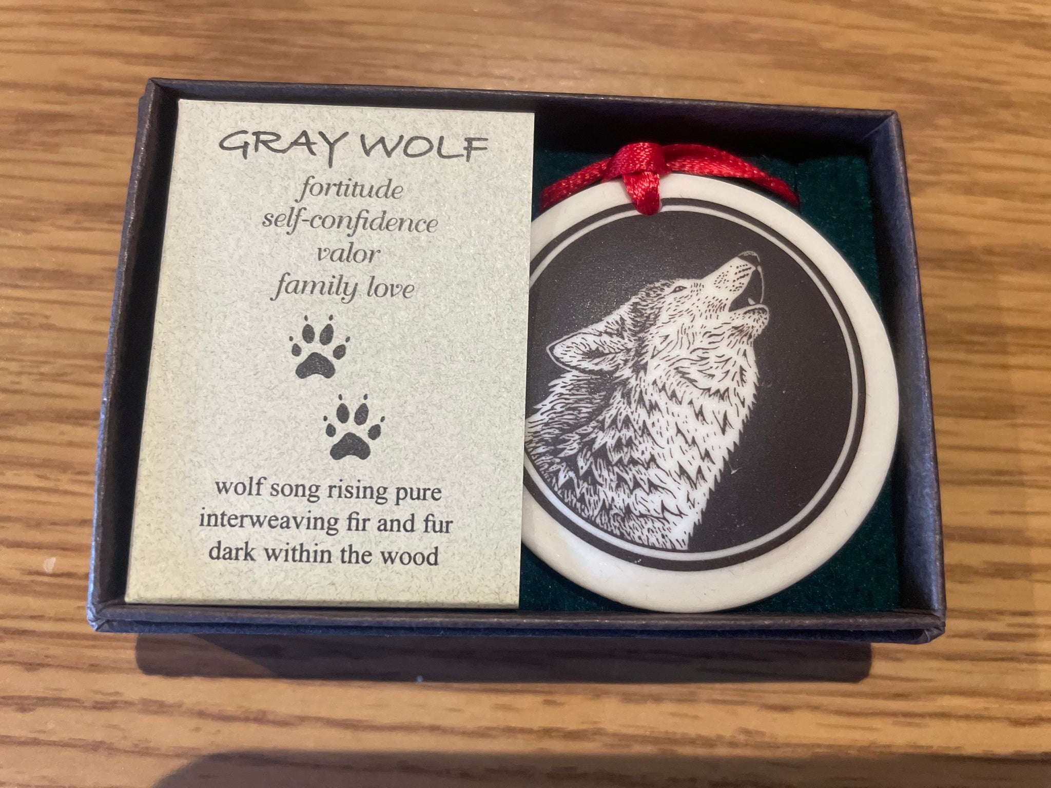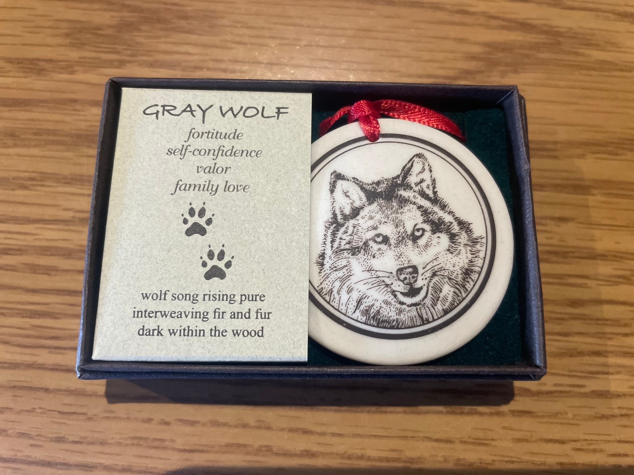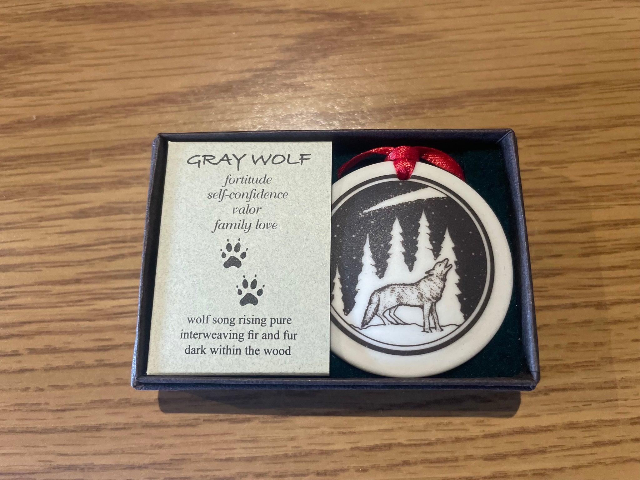 The Pathfinder Ornaments are on a red ribbon and come in a gift box with facts about the animal you select.
